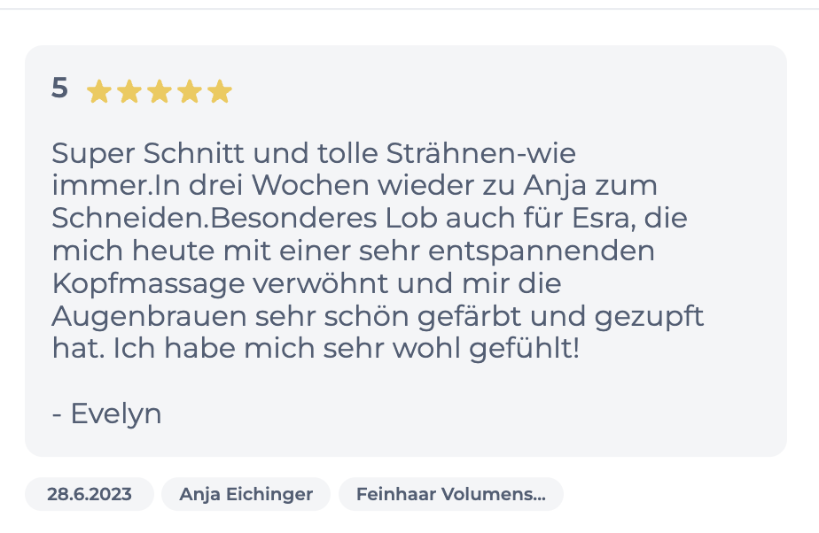 Präzise und Perfekt, so beschreiben wir Anja am liebsten. Anja ist unsere erste Gold-Master-Stylistin und ist für Ihre Hingabe zur englischen Schneidetechnik und ihrer detaillierten Arbeit bekannt. Perfektion benötigt ihre Zeit und daher sollte man bei Anja immer etwas mehr Zeit einplanen. Ihr wünscht euch einen innovativen Haarschnitt? Dann seid ihr bei Anja genau richtig.