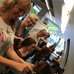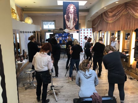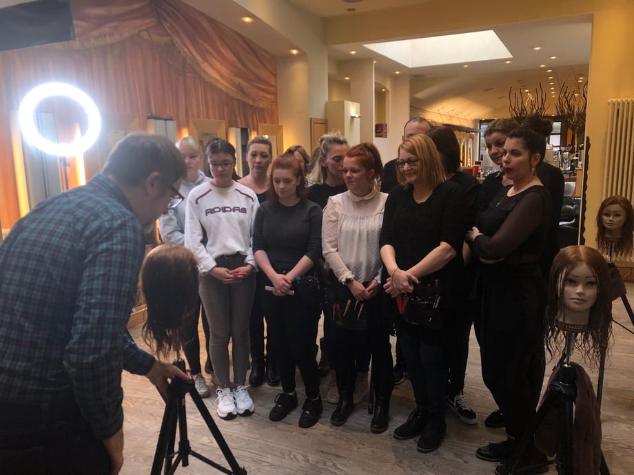 Selten erlebe ich es, daß unsere Mitarbeiter so brav in der Reihe stehen wie hier. Es war beeindruckend worauf Dove alles so achtet beim Haarschnitt. Man traute sich kaum zu atmen. Alles hat eine Bedeutung beim Haarschnitt. Wo man steht, wie man kämmt, wohin man zieht. Es war ein anstrengendes und sehr lehrreiches Wochenende!