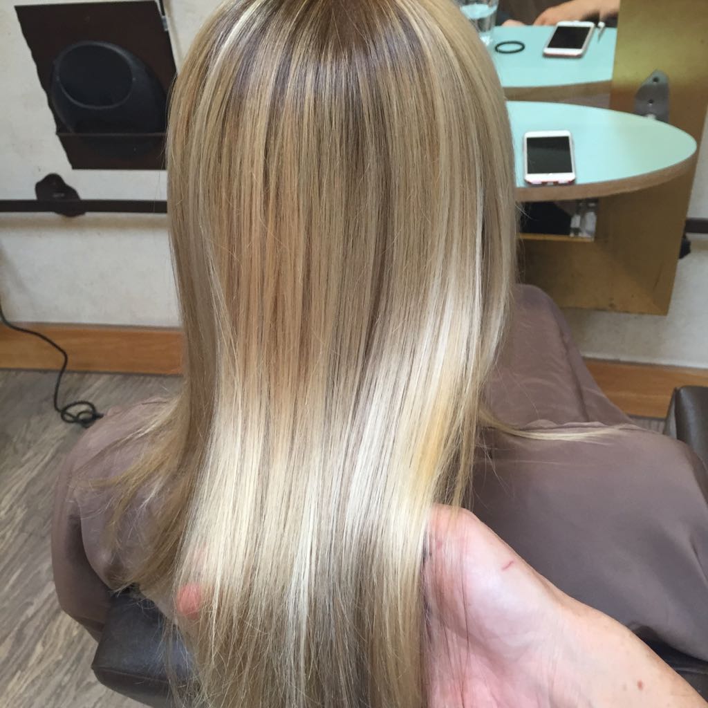 Hier arbeitet Toni mit einer Verschmelzung von Techniken aus Deutschland, Amerika und England. Speziell für Freihandtechniken haben wir eine eigenen Blondierung entwickelt. Abgerundet haben wir das Strähnenergebnis mit der englischen Farbe Infiniti von Affinage.